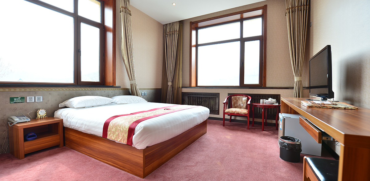 房内主次卧室两间,各含卫生间,休闲娱乐厅一间,会客厅一间,房内安全舒适、功能齐全,设有中央空调、闭路及卫星电视、国内/国际直拨电话,还可提供宽带上网以及其它娱乐、服务设施。